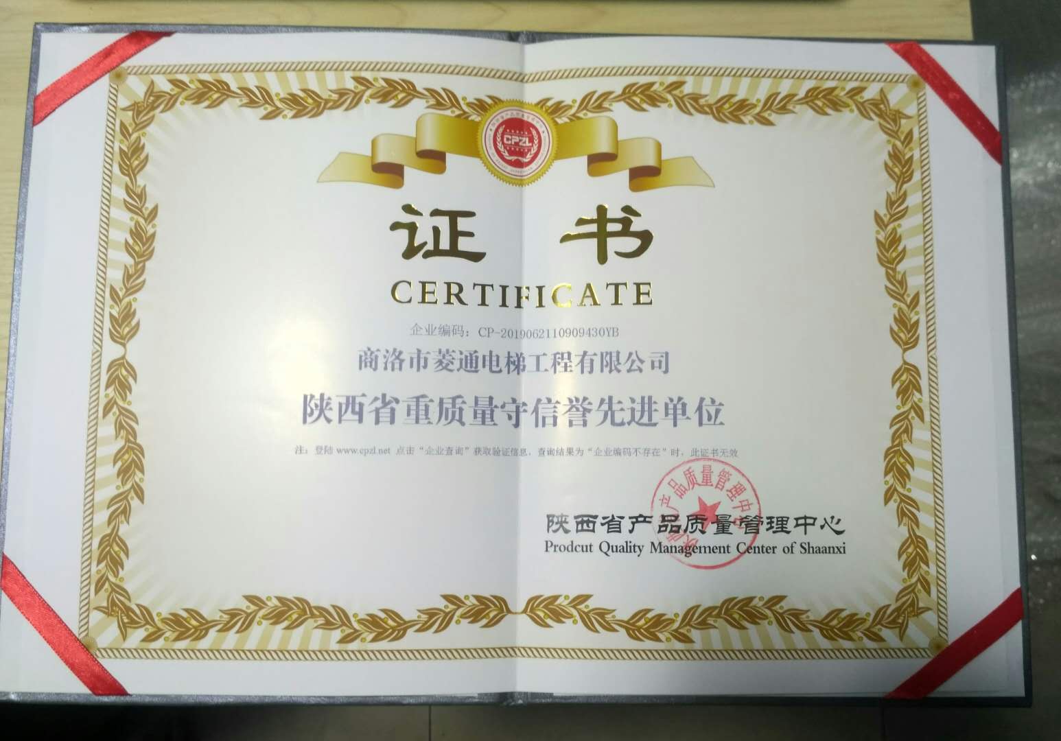 商洛菱通電梯工程有限公司,2019年很榮幸被陜西省產(chǎn)品質(zhì)量管理中心評為:陜西省AAA級信譽(yù)單位和陜西省重質(zhì)量守信譽(yù)先進(jìn)單位;并頒發(fā)獎牌及榮譽(yù)證書。這個榮譽(yù)不但得益于各單位的支持與默契合作,更得益于我公司優(yōu)良的團(tuán)隊(duì)氛圍和集體上下一致積極認(rèn)真的工作態(tài)度。更得益于領(lǐng)導(dǎo)重承諾守信譽(yù):提倡安全第一,質(zhì)量第一,信譽(yù)第一的原則。能被評為3A級信譽(yù)單位和信譽(yù)先進(jìn)單位,既是對公司工作的肯定,也是對今后工作做得更好的一種鼓勵,我公司定會盡職盡責(zé)做得更好。