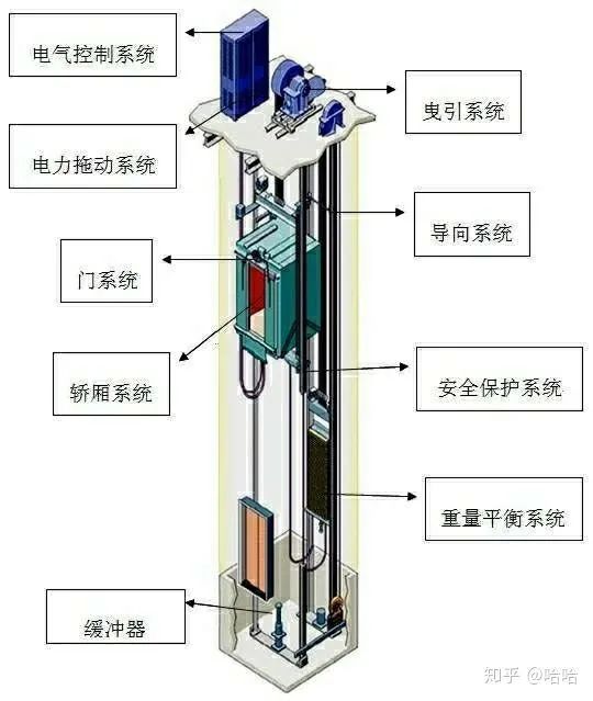 一、曳引系統(tǒng):電梯曳系統(tǒng)的功能是輸出動力和傳遞動力,驅(qū)動電梯運行。主要由曳引機,曳引鋼絲繩,導向輪和反繩輪組成。拽引機為電梯的運行提供動力,由電動機,拽引輪,連軸器,減速箱,和電磁制動器組成。拽引鋼絲的兩端分別連轎廂和對重,依靠鋼絲繩和拽引輪之間的摩擦來驅(qū)動轎廂升降。導向輪的作用是分開轎廂和對重的間距,采用復繞型還可以增加拽引力。
